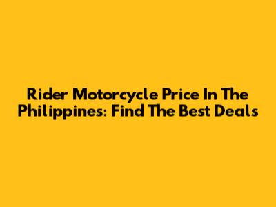 Rider Motorcycle Price In The Philippines: Find The Best Deals