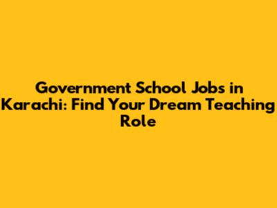 Govt School Jobs In Karachi: Find Your Dream Teaching Role