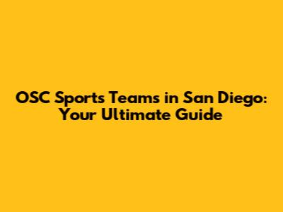 OSC Sports Teams In San Diego: Your Ultimate Guide